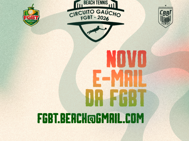Estamos com novo e-mail, para solicitações de rebaixamento, isenções entre outros. O antigo e-mail será visualizado até o dia 15/03. Segue nosso novo e-mail: fgbt.beach@gmail.com
