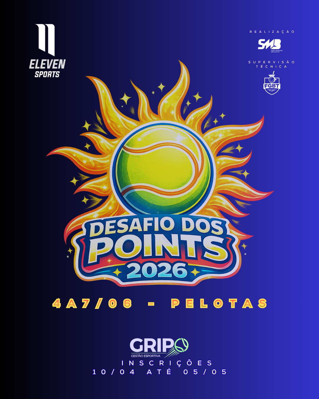 Desafio dos Points 2026beachtennisgaucho.com.br2026-03-25T10:32:30-03:00 REGULAMENTO CONSOLIDADO 2026 – link para donwload abaixo Regulamento-Desafio-dos-Points-2026 OK Inscrições começam dia 05 de abril e vão até 05 de maio. Dúvidas ou solicitações, via e-mail fgbt.beach@gmail.com e ou 51-989229009 com Maia.